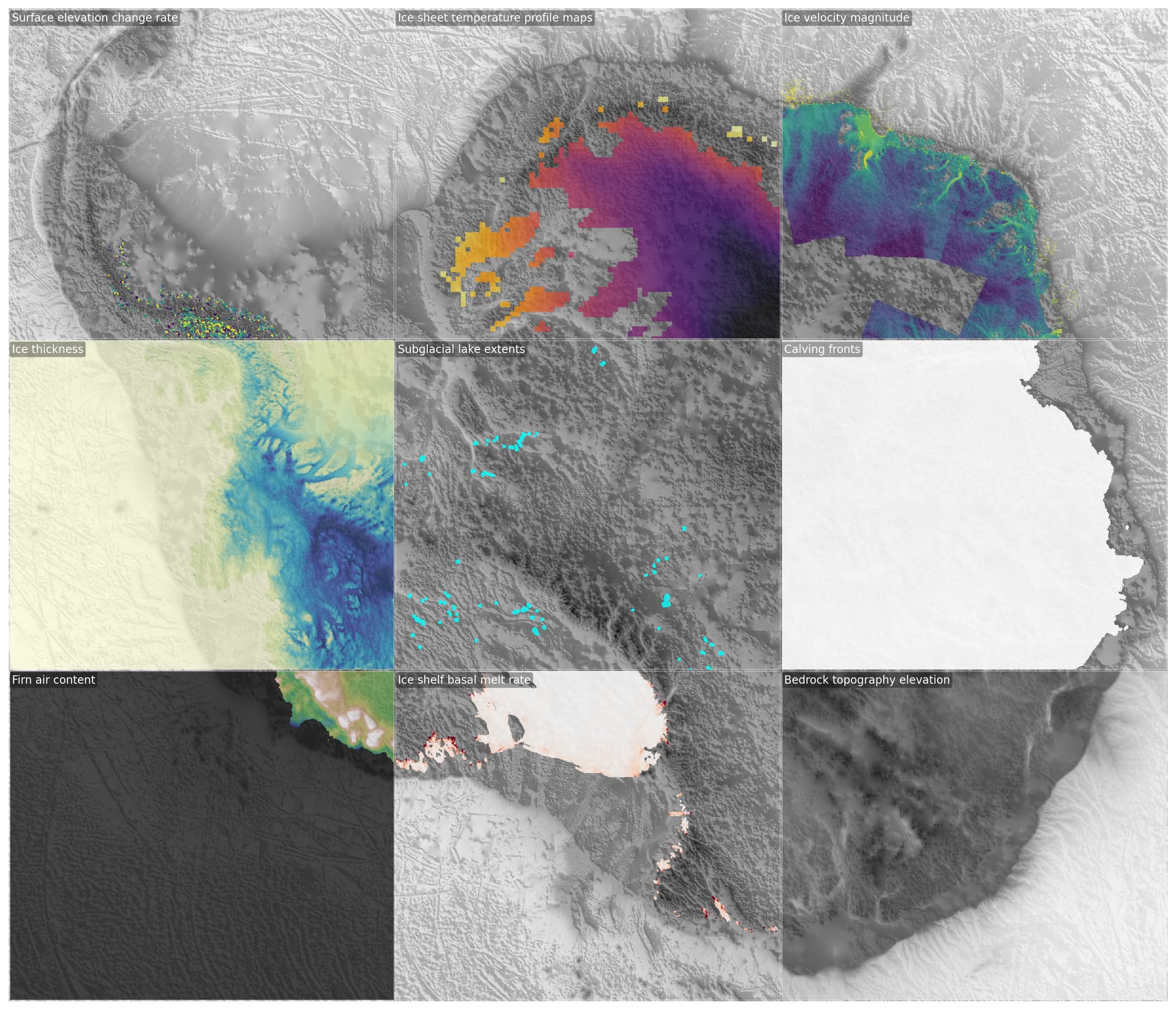 As part of the initiative, and to facilitate easier analysis of and access to scientific Antarctica data, the the below datasets are combined into zarr stores, reprojected to a common 100x100m grid in the EPSG:3031 Polar projection.